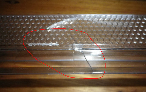 This part has a crack in the centre of the shelf that should not affect the usability of the item. The photos are of the actual item and the crack is highlighted in several of the photos. It has been significantly reduced in price.
